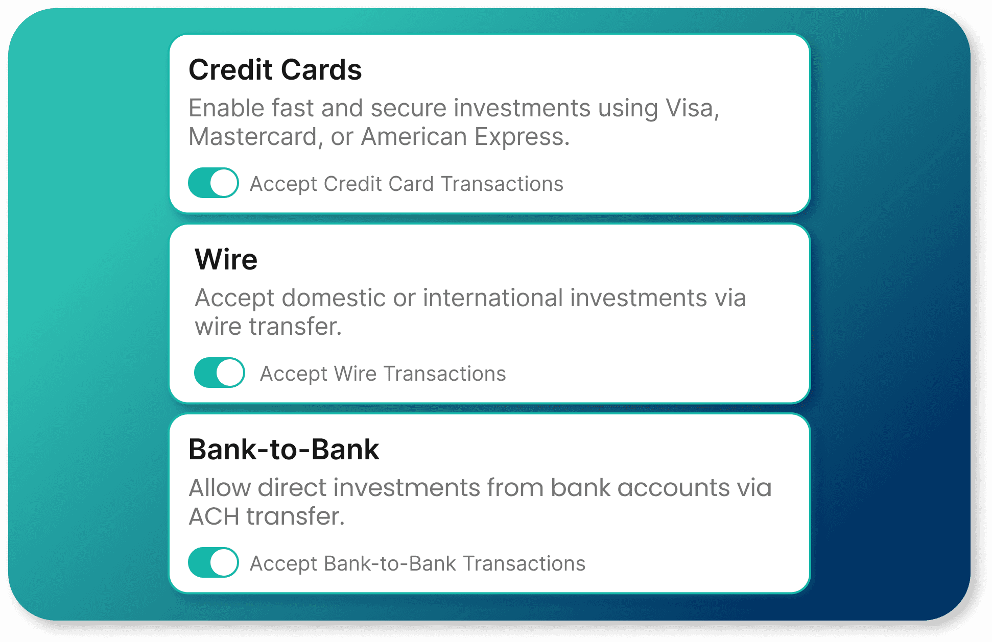 Raise on Your Own Website with Our Investment Checkout Technology.