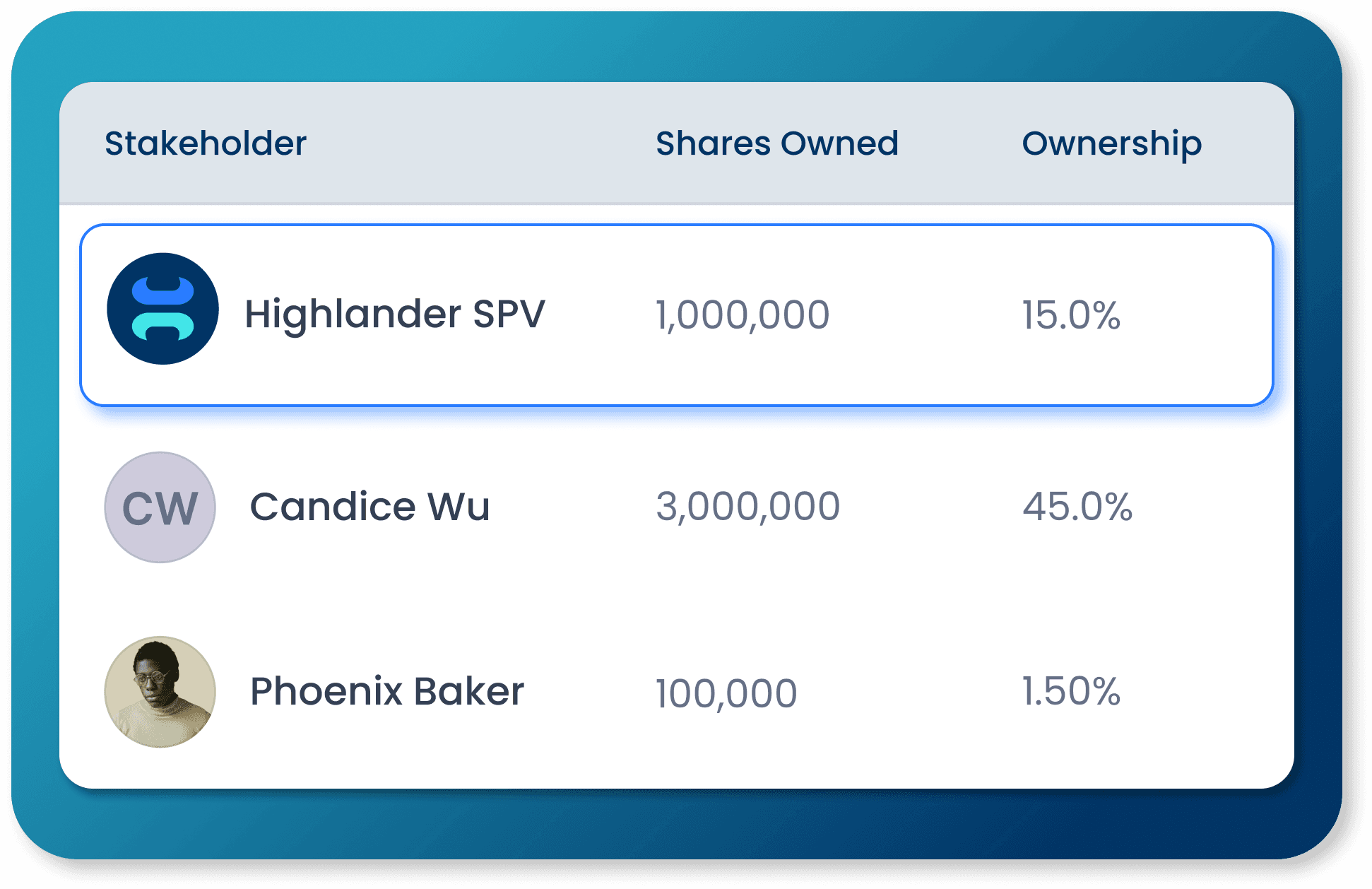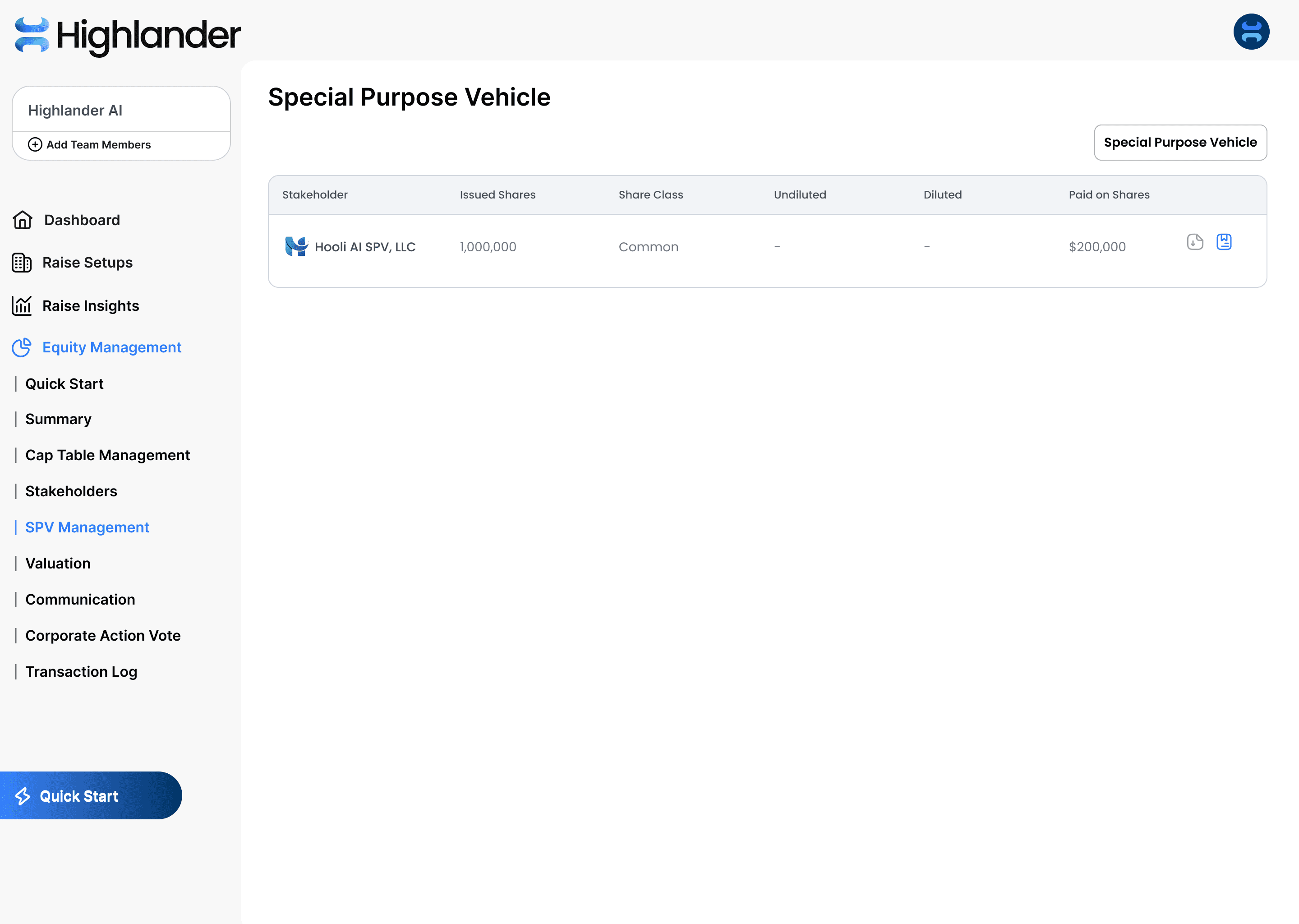 Easily manage your SPV—track ownership, update shareholders, all in one dashboard.
